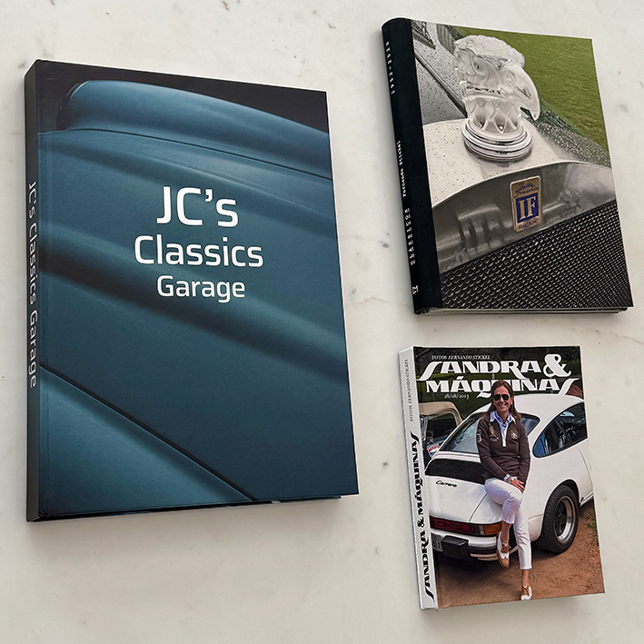 Fiz três livros sobre automóveis, o mais antigo “Clássicos” em 2020, depois “Sandra & Máquinas” de 2023, e finalmente o “JC’s Classics Garage” do final de 2025.