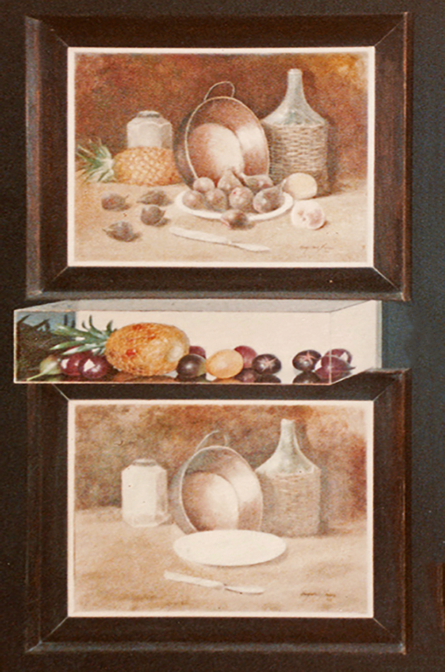 Este foi o outro trabalho do Nelson selecionado, que eu restaurei pessoalmente para poder estar na exposição, mandei refazer a caixa de acrílico que estava quebrada, e comprei as frutas plásticas faltantes…