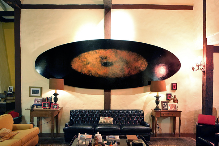 Terminado o show de rock, levei para o meu estúdio na R. Ribeirão Claro o enorme disco de madeira que havia sido construído, e fiz sobre ele uma nova pintura.