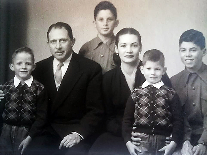 A família Iturralde Jahnsen, Manuco no colo da mãe e Francisco com o pai. Os dois mais velhos são meio-irmãos de um casamento anterior do pai.