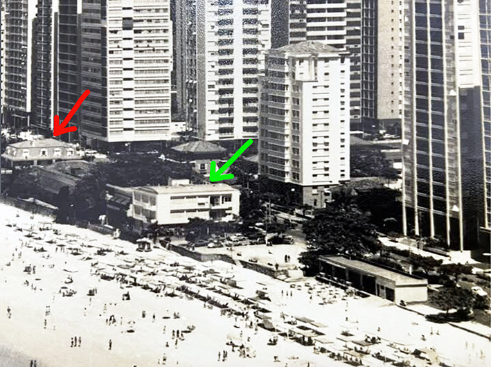 Anos mais tarde, meu irmão Roberto comprou um apartamento no Edifício Pajah, talvez o prédio mais privilegiado do Guarujá, indicado na SETA VERDE, onde foi vizinho do meu amigo Eduardo Longo, em seu apartamento com painéis de John Graz.