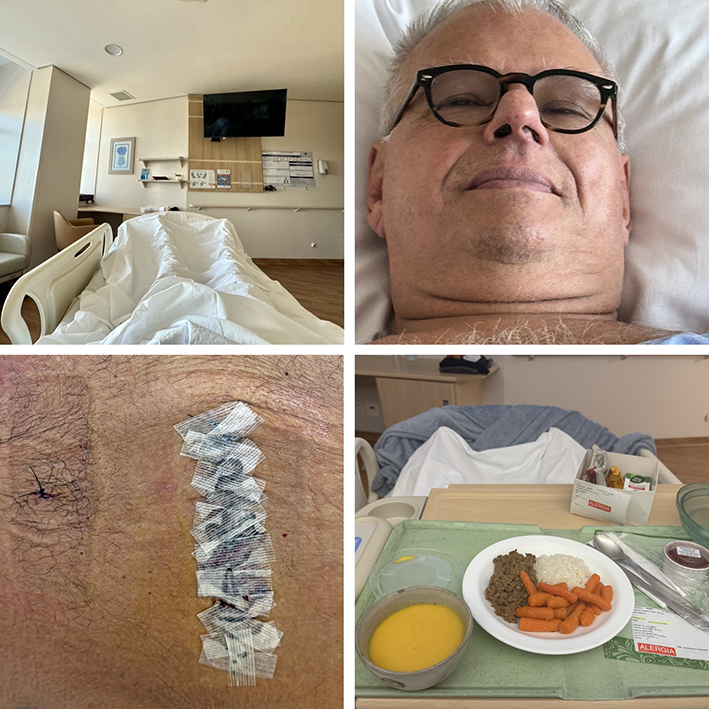 Na manhã seguinte recebi a visita do neurocirurgião Dr. Felipe Féres, da equipe do Dr. Hallim Féres, que me explicou todo o procedimento com clareza e serenidade. Vieram os exames, a rotina hospitalar, suavizada por um plano de saúde top, excelente atendimento, um bom quarto com uma janela enorme e vista linda — deu até para ver, de relance, o início do jogo São Paulo x Cruzeiro.