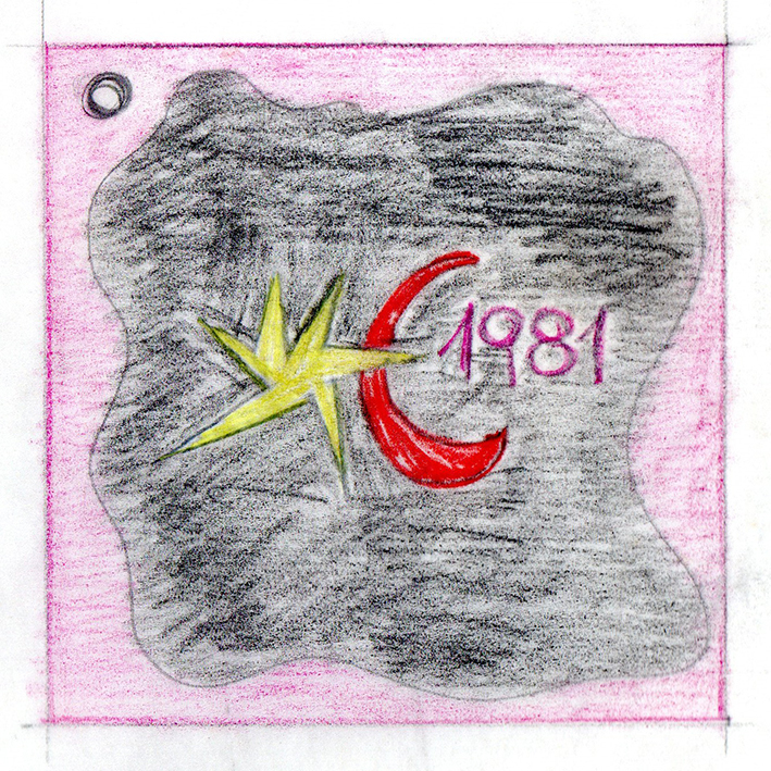 Criei esta forma estrela + lua para usar em um cartão comemorativo da minha empresa de comunicação visual und em 1981.
